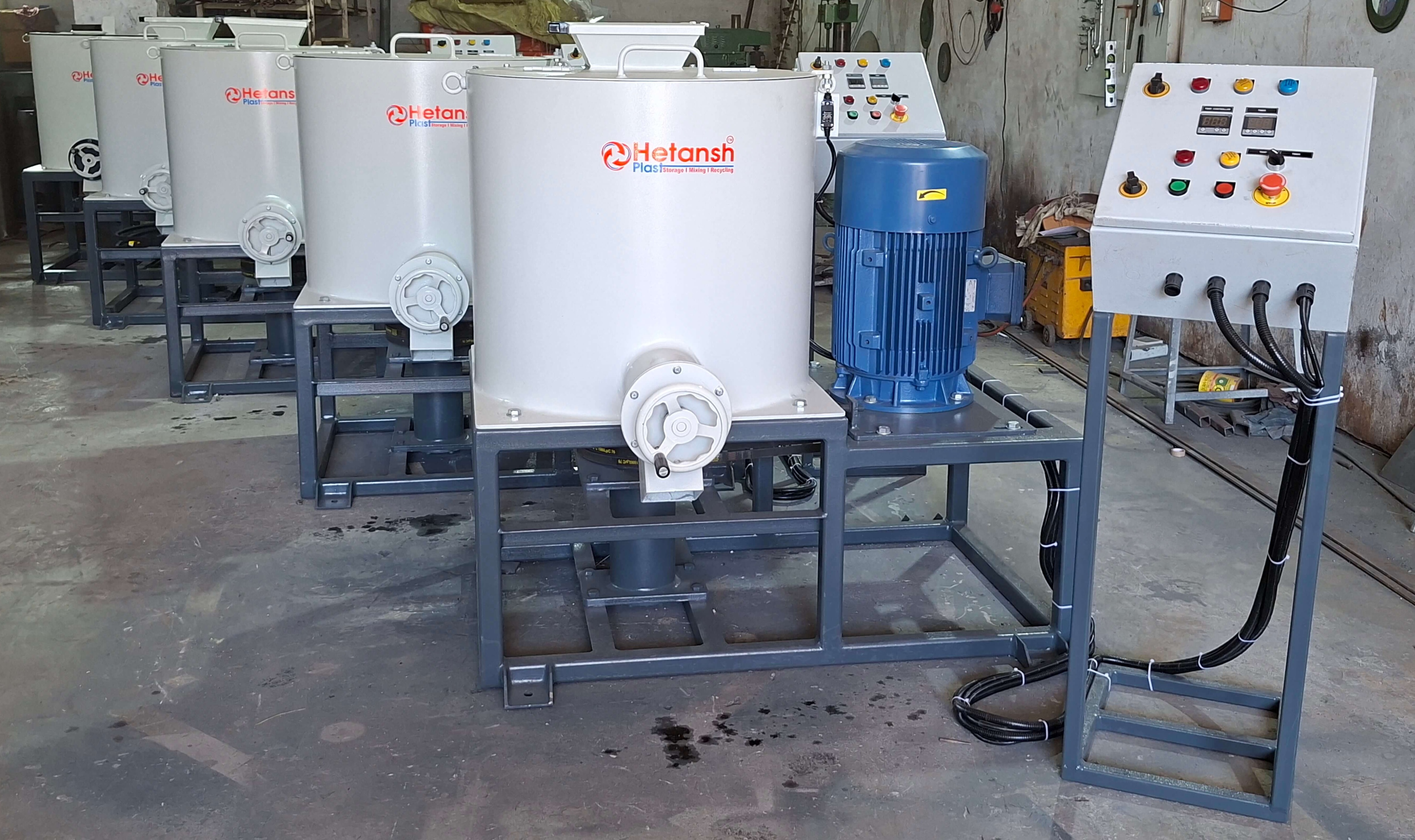 Vertical Plastic Mixer Dryer Machine — Granules Mixer Cum Dryer Machine. Hetansh Plast Machinery Pvt. Ltd. : India's Leading Manufacturer & Exporter of Plastic Mixer with Heater Machine, Mixer Dryer Machine, Granules Mixer Cum Dryer Machine & Plastic Mixer with Dryer Machine. What Is a Vertical Plastic Mixer Dryer Machine? A Vertical Plastic Mixer Dryer Machine — also marketed as a Plastic Mixer with Heater Machine, Mixer Dryer Machine, Granules Mixer Cum Dryer Machine, or Plastic Mixer with Dryer Machine — is an industrial equipment designed to simultaneously mix and dry plastic raw materials, recycled granules, masterbatch, additives, and fillers before they enter extrusion, injection moulding, or blow moulding processes. The vertical conical or cylindrical body houses a high-speed rotating shaft fitted with angled mixing paddles. An electric heater and blower maintains a controlled temperature to evaporate moisture from hygroscopic resins such as PET, Nylon, ABS, PC, HDPE, LDPE, LLDPE, PP, and PVC compounds. The result is a homogeneously blended, bone-dry mixture — critical for achieving defect-free finished plastic products with zero sink marks, silver streaks, or voids. Hetansh's Vertical Plastic Mixer Dryer uniquely integrates a precision temperature controller with batch mixing timing control — all in a compact footprint that fits comfortably on most production floors. Key Process Advantages : When you invest in our Granules Mixer Cum Dryer Machine, you eliminate two separate machines — a standalone blender and a hopper dryer — and replace them with one compact, energy-efficient unit. This reduces floor space by up to 40%, lowers electricity consumption by 30%, and minimises material handling steps. The jacketed heating system ensures uniform heat distribution without hot spots, protecting shear-sensitive materials like PVC and TPE from degradation. Industries & Materials — Granules Mixer Cum Dryer Machine Applications : Our Plastic Mixer with Heater Machine is engineered to handle virtually every thermoplastic, thermoset compound, filler, and additive used in modern plastics processing. Below are the key material categories and industries served : PET / RPET Granules HDPE / LDPE / LLDPE PP Homopolymer & Copolymer ABS / SAN / PS PVC Dry Blend Nylon PA6 / PA66 Polycarbonate (PC) Masterbatch Blending Colour Mixing Calcium Carbonate Filler BOPP / CPP Film Scrap Recycled Regrind TPU / TPE Compounds POM / Acetal Engineering Resins Industries served : Pipe & fitting extrusion, injection moulding, blow moulding, film extrusion, cable & wire compounding, PVC profile extrusion, automotive plastic parts, packaging, agriculture pipes, medical devices, and more. Supply & Service Locations — India & International : Hetansh Plast Machinery supplies, installs, and provide 100% satisfactory services for Vertical Plastic Mixer Dryer Machines across all major industrial clusters in India and exports to over 20 countries worldwide. We maintain strong logistics partnerships ensuring fast delivery and erection support. North India : Delhi Ghaziabad Chandigarh Haryana Faridabad Himachal Pradesh Uttarakhand Uttar Pradesh West India Gujarat Ahmedabad Vadodara Rajkot Morbi Mumbai Thane Pune Maharashtra Rajasthan Daman & Diu Dadra & Nagar Haveli South India Bengaluru Karnataka Chennai Tamil Nadu Coimbatore Hyderabad Telangana Andhra Pradesh Kerala Central & East India Madhya Pradesh Indore Chhattisgarh Bihar West Bengal Odisha Jharkhand Sikkim Africa & Middle East : Nigeria Kenya Tanzania Ghana Uganda Rwanda Zambia Cameroon Burkina Faso UAE Qatar Saudi Arabia Kuwait Oman Asia, Oceania & Americas : Nepal Bangladesh Sri Lanka Mauritius Philippines Indonesia Vietnam Australia USA UK Brazil Denmark Finland Frequently Asked Questions : What is the difference between a vertical plastic mixer dryer machine and a horizontal mixer? A vertical mixer dryer has a top-mounted motor and a vertical mixing shaft — this configuration delivers better mixing action for dense or fibrous materials and requires less floor space. The vertical design also allows gravity-assisted discharge through a bottom discharge port with left right and back side as per your availability, making it faster and cleaner than horizontal designs that require manual scooping or conveying. Can the mixer dryer machine handle PET and Nylon which require deep drying? Yes. Our HPVMD series reaches up to 100°C with precision temperature control, suitable for hygroscopic resins like PET, Nylon PA6/PA66 (80–100°C), PC, ABS, and acetal. For very long drying cycles on PET, we recommend pairing our mixer dryer with a dedicated dehumidifying dryer for ultra-low dew point drying. What is the typical batch cycle time for a 200 kg plastic mixer with heater machine? For standard masterbatch blending without drying, cycle time is 10–15 minutes. For drying hygroscopic materials like PET, typical cycle time is 40–50 minutes at rated temperature, depending on initial moisture content and target moisture level. Our machines support continuous batch cycling for high-volume production lines. Do you offer custom sizes or special configurations of the granules mixer cum dryer machine? Absolutely. Hetansh Plast Machinery designs custom configurations including larger capacities up to 5000 kg,. Please share your requirement and our engineering team will submit a detailed proposal. What is the warranty and after-sales support offered by Hetansh Plast Machinery? All Hetansh mixer dryer machines carry a 12-month comprehensive warranty on manufacturing defects. We provide on-site commissioning, operator training, and annual maintenance contracts (AMC). Spare parts including bearings, heating elements, seals are available ex-stock from our Ahmedabad warehouse. International customers receive support via authorised service agents and remote diagnostics. Can you export the plastic mixer with dryer machine to Nigeria, UAE, Bangladesh, or Nepal? Yes. We are